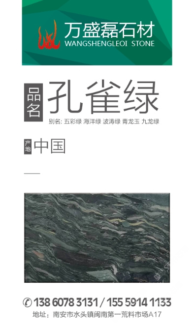 自有礦山 長期有貨 (誠信是我們的右坐銘,誠信是我們發(fā)展的根本) 主營: 《新亞馬遜綠》 鉑金灰(鉑金白麻)正礦年產30000立方 孔雀綠(五彩綠)四季綠 云南綠 綠水仙 北大青 銀杏木紋 一點紅 等石材產品的開采與銷售,多年開采多樣品種石材產品遠銷國內外,用于出口臺面板,出口洗臉盆,及歐美墓碑,俄羅斯墓碑,國內墓碑,別墅外墻,大樓外墻干掛,異型雕刻,國內市場臺面板,家裝廚房臺面,樓梯踏步,電梯門套,酒店大廳鋪設,極其主色拼色。