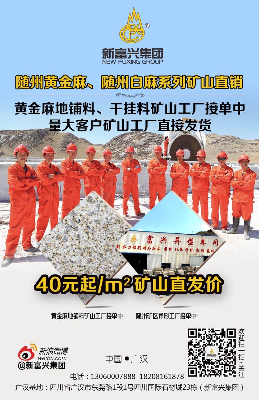 新富興集團旗下礦業(yè)板塊國內(nèi)擁有6座大型礦山分別分布在福建、湖南、湖北、新疆等省市盛產(chǎn):664#羅源紅、隨州黃金麻、黃金鉆、卡基諾金、隨州白麻、新疆豹皮鉆、焉耆白麻、湖南芝麻灰等花崗巖;石材板塊分別在四川省以及新疆維吾爾自治區(qū);新疆擁有三家企業(yè)其中四川省范圍內(nèi)擁有3個大型石材加工基地;成都工廠位于成都沙西線主營:花崗巖工程建設(shè)用石材;2013年成立廣漢富興石業(yè)有限公司在四川廣漢市修建兩家工廠分別位于:四川省廣漢市東莞路一段1號四川國際石材城23棟和29棟;總占地面積55畝。成都工廠負責銷售自有礦山的石材產(chǎn)品以及其他品種進口、國產(chǎn)花崗巖石材產(chǎn)品大量使用于市政工程、房地產(chǎn)以及大型公共設(shè)施;廣漢工廠除專業(yè)批發(fā)自有礦山:福建、湖北、湖南、四川、新疆等省市自有礦山石材產(chǎn)品外,大理石是新富興集團四川地區(qū)石材產(chǎn)業(yè)的主力產(chǎn)品,早在1998年開始新富興集團前身企業(yè)之一“成都市金牛區(qū)富興石材加工廠”就已經(jīng)成為西南地區(qū)的進口大理石供應商之一;現(xiàn)目前集團規(guī)模不斷擴大并在福建、湖南、湖北、四川、新疆等地區(qū)開發(fā)6座大型礦山并有著的礦山資源優(yōu)勢掌握了產(chǎn)品的源頭以及多年積攢的社會的人脈資源與管理團隊擁有各種先進的技術(shù)與設(shè)備;承接國內(nèi)外各種異形大理石、花崗石加工,廠區(qū)擁有先進的水刀設(shè)備多臺擁有紅外線橋式切割設(shè)備數(shù)十臺,全自動電腦仿形設(shè)備數(shù)十臺,全自動線條磨邊流水線設(shè)備多臺,異形圓柱設(shè)備多臺,異形車床等眾多異形設(shè)備同時擁有熟練的技師配合優(yōu)秀的管理者及高效率的服務團隊使得新富興集團四川地區(qū)石材產(chǎn)業(yè)板塊一直處于當?shù)匚恢?,為集團業(yè)績做出杰出的貢獻。 從2003年開始,分別通過了ISO9001、ISO14001質(zhì)量管理體系認證和ISO18000職業(yè)健康管理體系認證。并在各城市重點工程建設(shè)項目及進出口貿(mào)易創(chuàng)下了佳績。形成一整套較為完善的管理體系?!熬屑毮ァ⒄\信服務;面向全球、美化世界”為公司的經(jīng)營宗旨。www.fxstone.com
