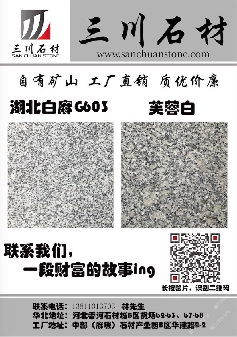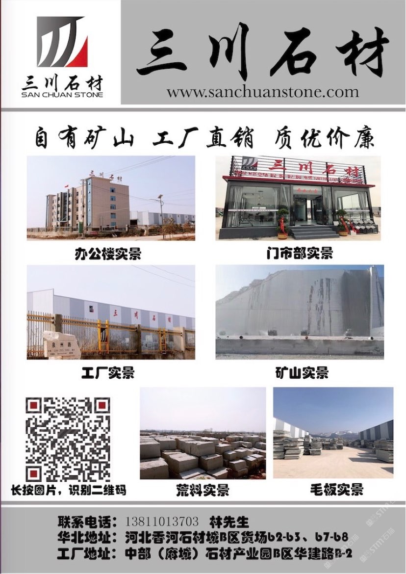 三川石材有限公司是一家專注于國內(nèi)石礦開采、加工及貿(mào)易的專業(yè)化公司,是湖北省麻城市知名石材企業(yè)之一。公司的創(chuàng)始人團(tuán)隊從業(yè)始于1996年初,1998年在福建省羅源縣投資建廠,經(jīng)過近三十多年的發(fā)展,2013年將公司總部設(shè)在中部(麻城)石材循環(huán)經(jīng)濟(jì)產(chǎn)業(yè)園,下設(shè)河北、湖北、重慶、江西、浙江等幾大生產(chǎn)加工基地及銷售網(wǎng)點。