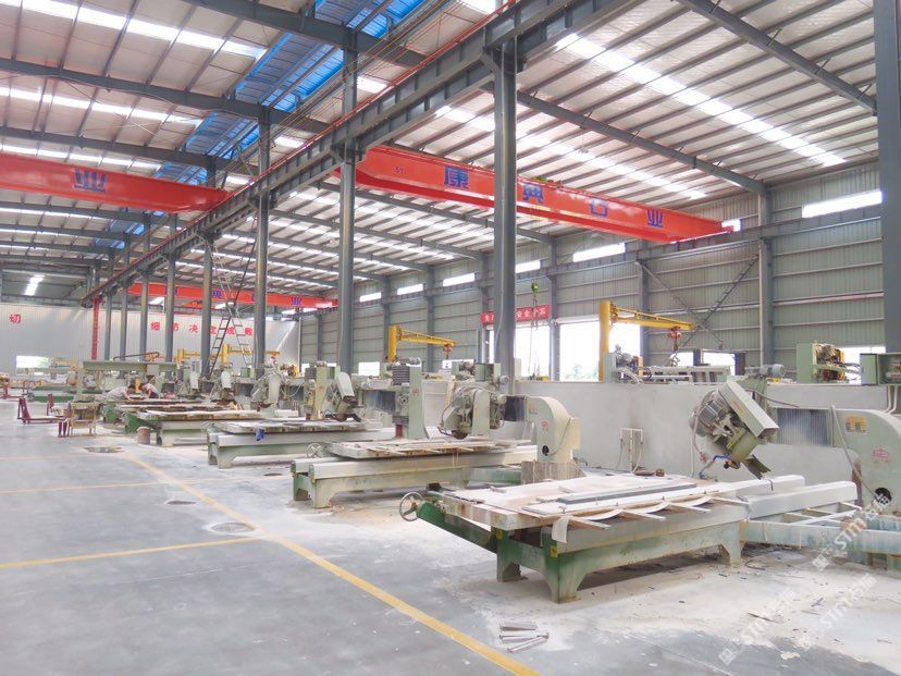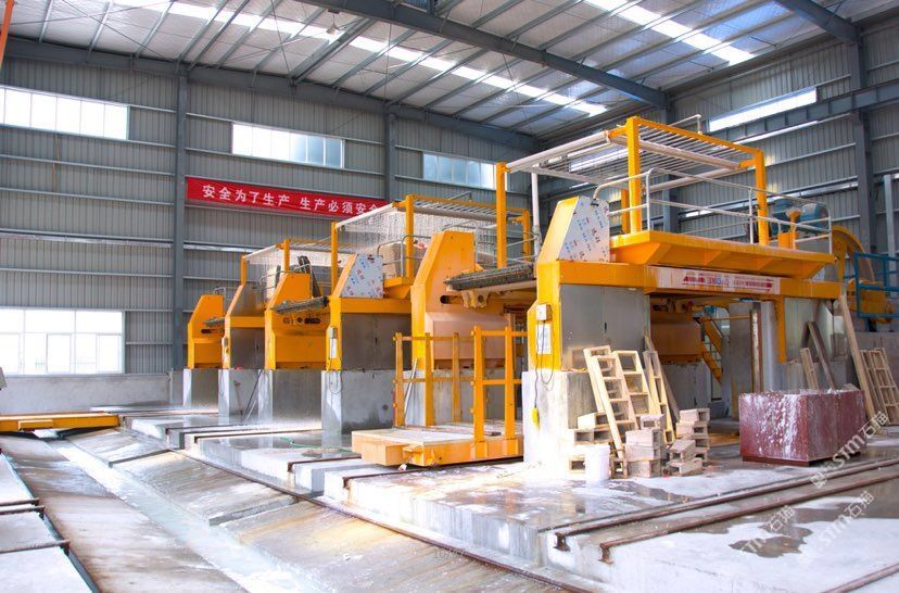 公司擁有3臺(tái)進(jìn)口沙拉據(jù),12臺(tái)進(jìn)口靖佑紅外線切割機(jī),2臺(tái)水刀切割機(jī),各類(lèi)線條機(jī)、仿形機(jī)、雕刻機(jī)等等50多臺(tái)(套)。每周切割產(chǎn)量約為5000平方左右,每周成品出廠量可達(dá)3000方左右。\\\