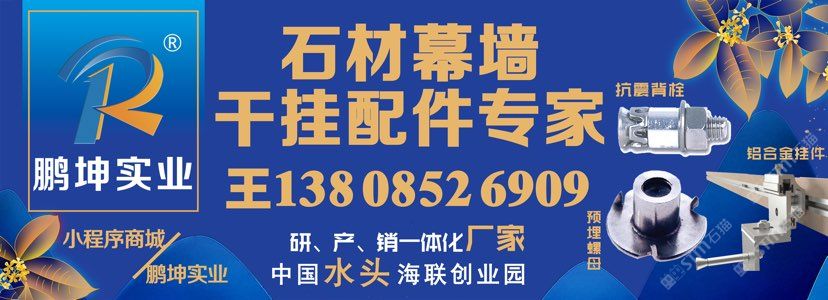 產(chǎn)品涵括石材金屬配件全鏈條:背栓、錨栓、鋁合金掛件、不銹鋼掛件、龍骨系統(tǒng)、預(yù)埋件、拓孔設(shè)備及服務(wù)、鋁合金加強(qiáng)筋、預(yù)埋螺母、光伏支架等。