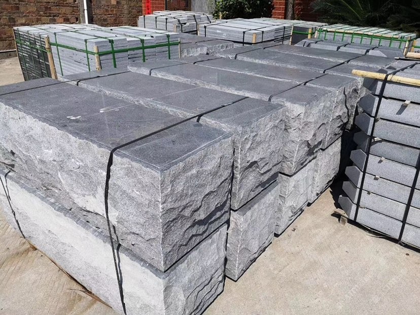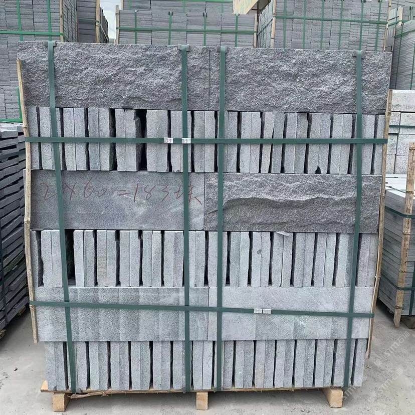 泓發(fā)石材主營芝麻黑G654#芝麻灰G655#自然面蘑菇石波蘿面背景墻小方塊滾動石及各規(guī)格板材