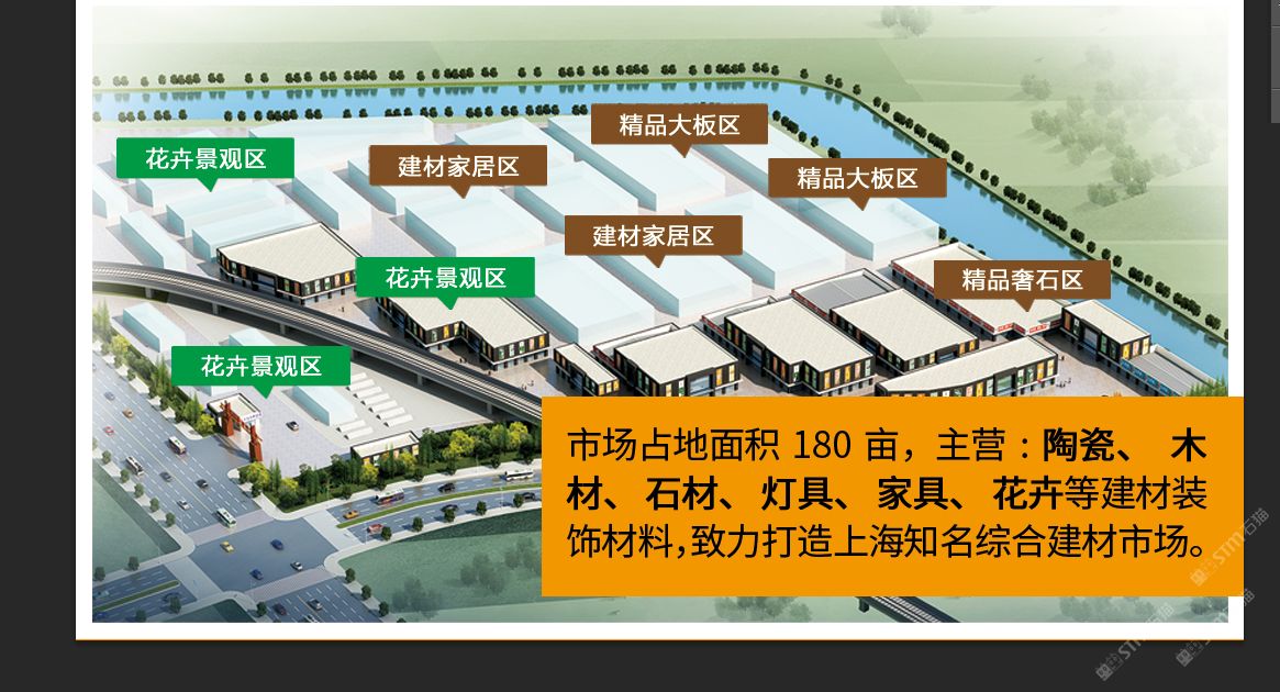 曹安路20年成熟市場(chǎng),公司自有房產(chǎn)證,地處國(guó)際汽車(chē)城安亭鎮(zhèn),11號(hào)線國(guó)際汽車(chē)城站200米,附近住宅密集。自2000年開(kāi)業(yè)以來(lái),已吸引各地300多家廠商入駐,市場(chǎng)運(yùn)營(yíng)數(shù)十年,區(qū)域功能日臻完善,形成以陶瓷、衛(wèi)浴、木材、石材、家居等聚集區(qū),打造一站式建材家居市場(chǎng),全方位建材體驗(yàn)中心。 現(xiàn)增設(shè)石材精品館,石材采購(gòu)基地。