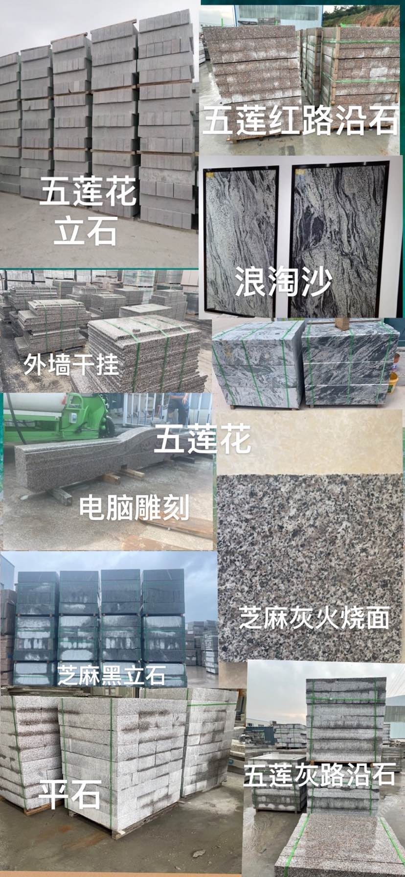 廠礦直銷 自有五蓮花,五蓮灰礦山 主營(yíng):五蓮花,五蓮灰,浪淘沙,芝麻白,芝麻灰 路沿石、規(guī)格板、毛板、異形、仿形,門牌石,景觀石等石材加工 歡迎來(lái)電:18816335088