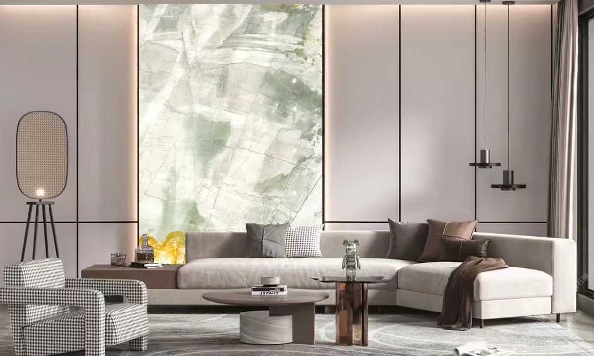發(fā)布信息: 佰達奢石「筆墨山河」 編號:BD-333 規(guī)格:3340X1890mm 筆墨隨風舞,行事若流云,「筆墨山河」似乎將大自然的鬼斧神工融入人文畫作,自然裂紋像極隨意的潑墨,又似寫意山水貫穿古今,在穆穆文雅與肅然莊重之間奠定的“隱奢”生活基調