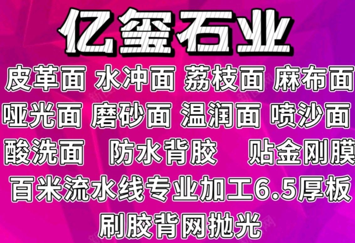 億璽皮革面麻布面荔枝面高壓水沖掃描貼膜背膠 聯(lián)系人:黃    177****7905 查看 177****7905 查看 主營范圍: 大理石加工、石材輔料及特殊工藝、 企業(yè)地址:福建泉州南安市水頭鎮(zhèn)曾莊村匯恒C5