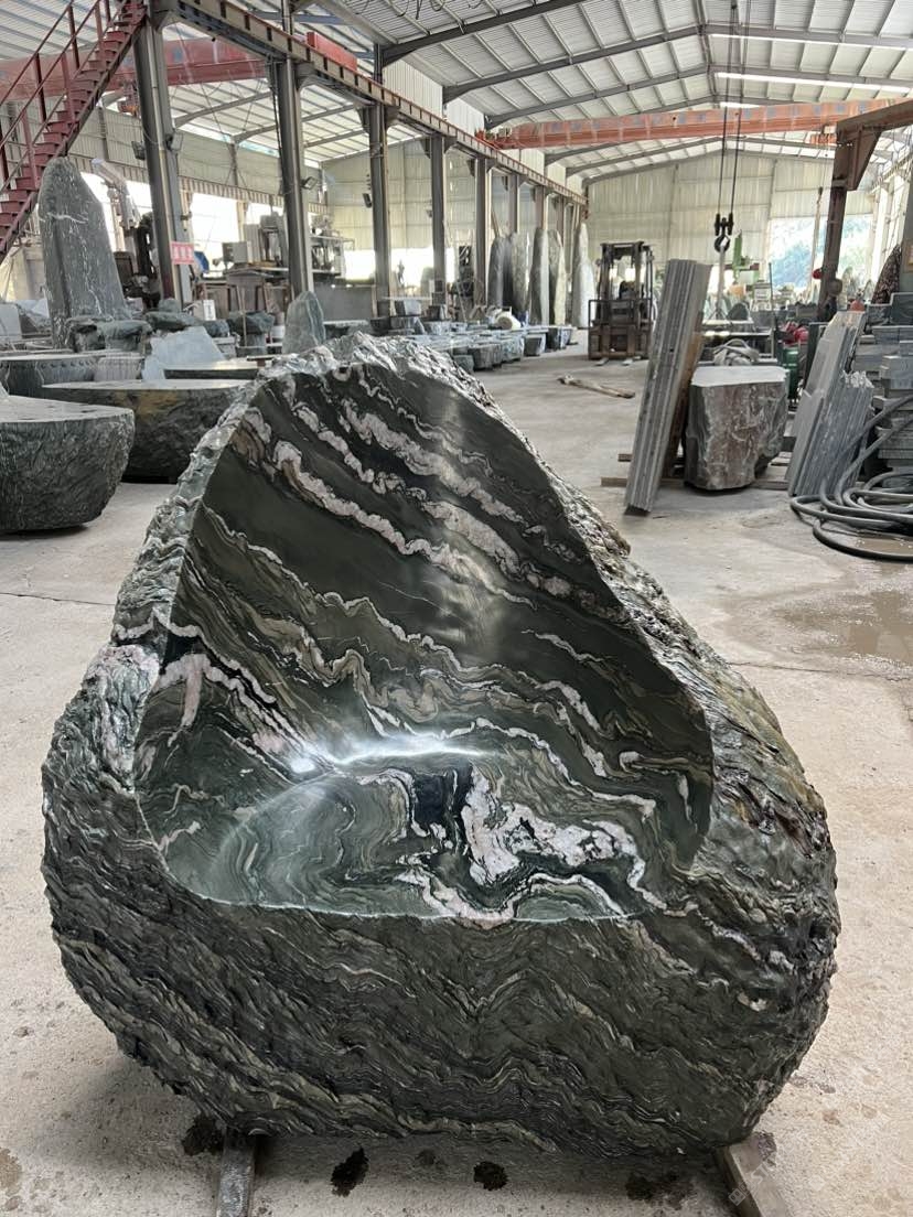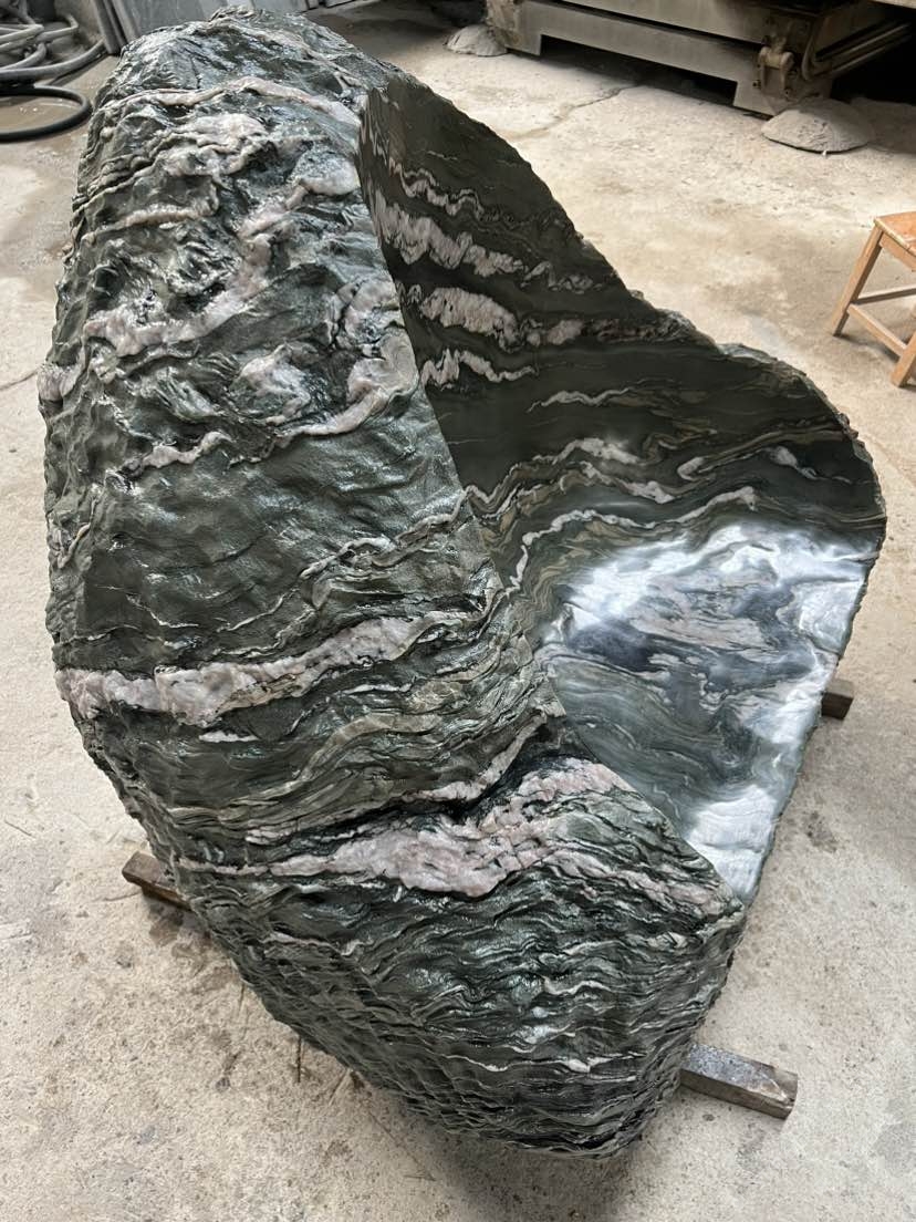 發(fā)布信息: 九龍玉整石座凳,綠底云紋如山水畫卷,隨形挖鑿的坐面,糙石肌理配柔滑觸感,往院里一放,坐下來就是“把山水揣進日?!眫