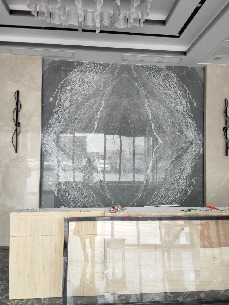 發(fā)布信息: 天然大理石背景墻,幻影灰背景墻、樓梯、地面效果。白玉蘭墻面、套口效果實體圖