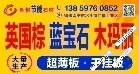 發(fā)布信息: 木瑪麗/藍(lán)寶石/英國棕(超薄板)吳總 13859760852手機(jī)微信同號-福建超悅石材薄板科技有限公司是一家專注于生產(chǎn)、研發(fā)花崗巖超薄板的研發(fā)型企業(yè),秉承“用創(chuàng)新的芯、做超薄的板、走節(jié)能的路”的發(fā)展理念,在多年來堅(jiān)持不懈的努力下,成功地研發(fā)了擁有環(huán)保性能及高新技術(shù)的超薄板,其優(yōu)點(diǎn)可與國際薄板加工技術(shù)媲美。 花崗巖超薄板被廣泛應(yīng)用于復(fù)合板領(lǐng)域,包括保溫材料和鋁蜂窩等,是建筑外墻裝飾材料的。該產(chǎn)品降低了建筑成本、節(jié)約了裝飾 材料,縮短了施工周期,是當(dāng)今社會(huì)廣為提倡和國家大力推廣的綠色、環(huán)保、節(jié)能建筑裝飾材料。 公司堅(jiān)持奉行“創(chuàng)新永不止步,品質(zhì)始終如一”的經(jīng)營理念,爭創(chuàng)花崗巖超薄板領(lǐng)導(dǎo)品牌,將花崗巖超薄板做專做精做廣做強(qiáng)。
