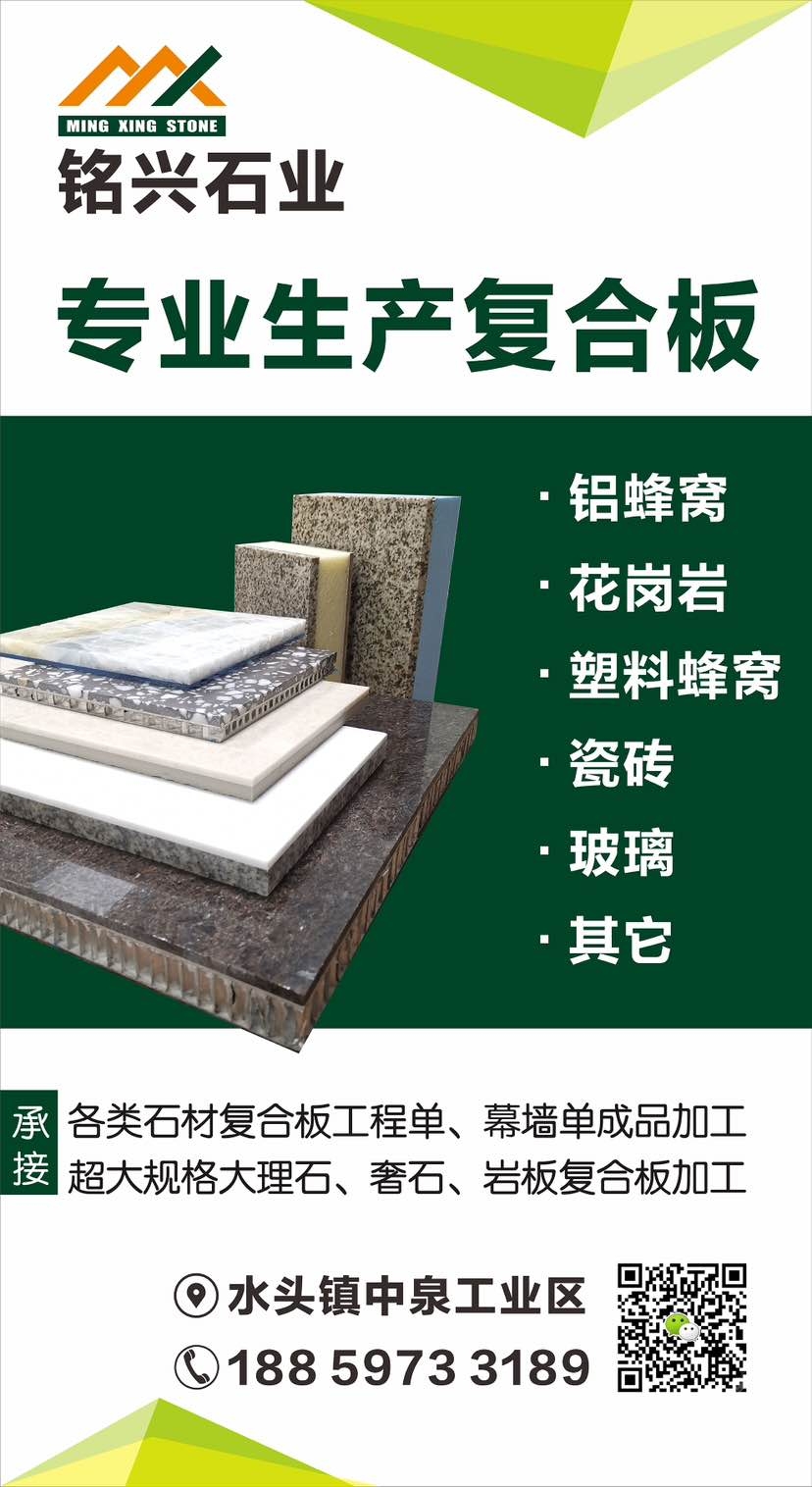 銘興石材(善德建材有限公司) 聯(lián)系人:吳先生    135****6917 查看 手機號碼:無 主營范圍: 薄板復合板加工、大理石加工、花崗巖加工、石材輔料及特殊工藝、大板批發(fā)、 企業(yè)地址:福建泉州水頭鎮(zhèn)中泉工業(yè)區(qū)