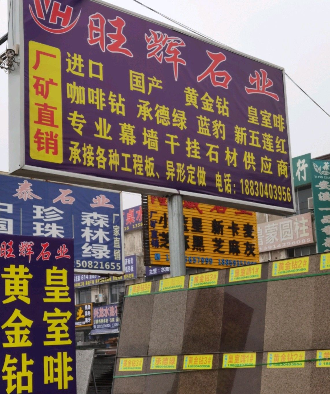 旺輝石業(yè) 聯(lián)系人:林先生    188****3956 查看 188****3956 查看 主營范圍: 大板批發(fā)、 企業(yè)地址:江蘇無錫宜興市萬石鎮(zhèn)華東石材市場