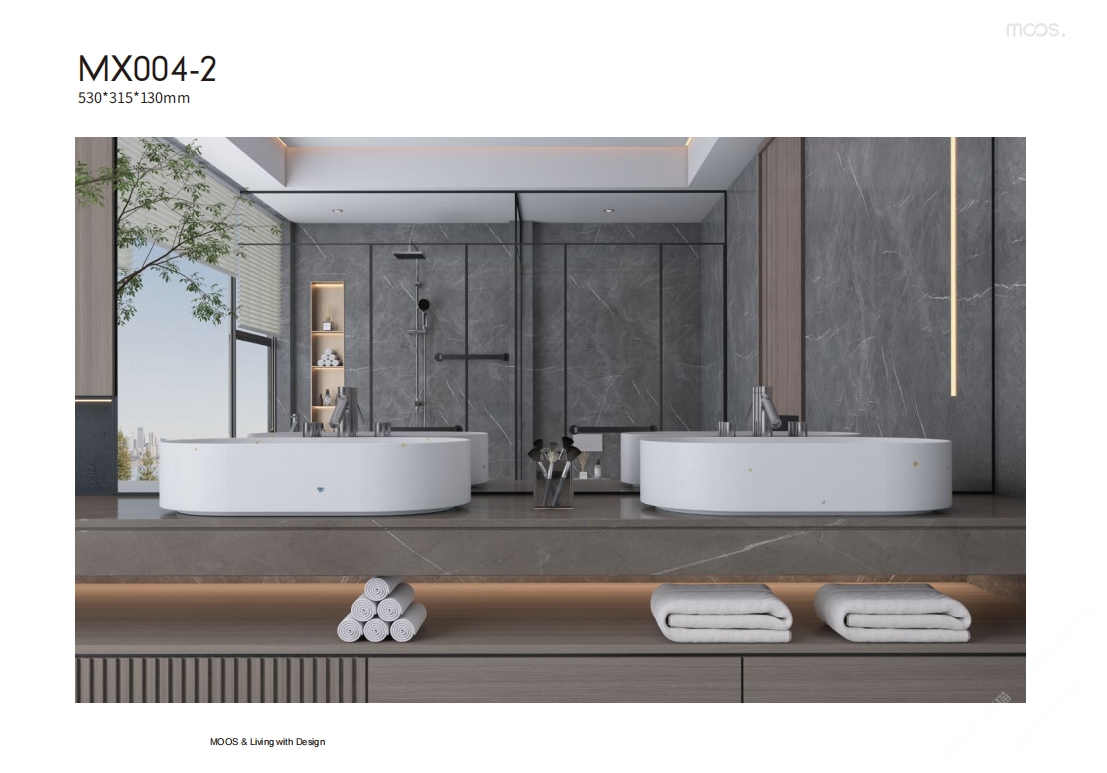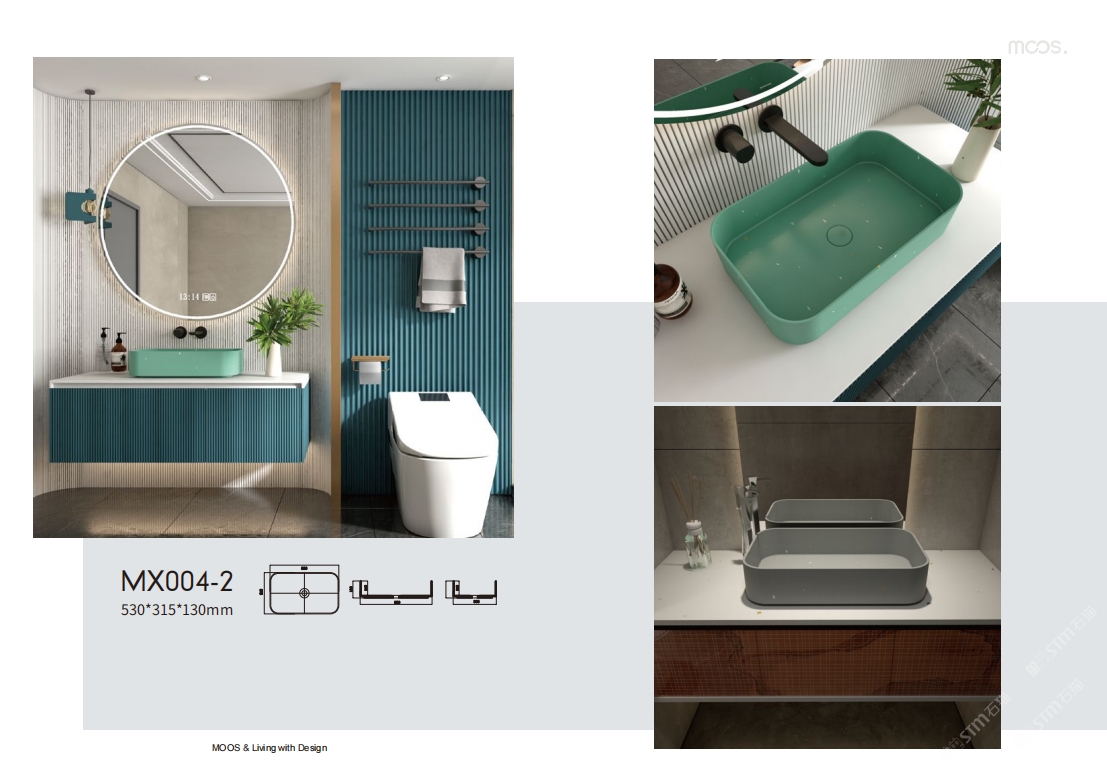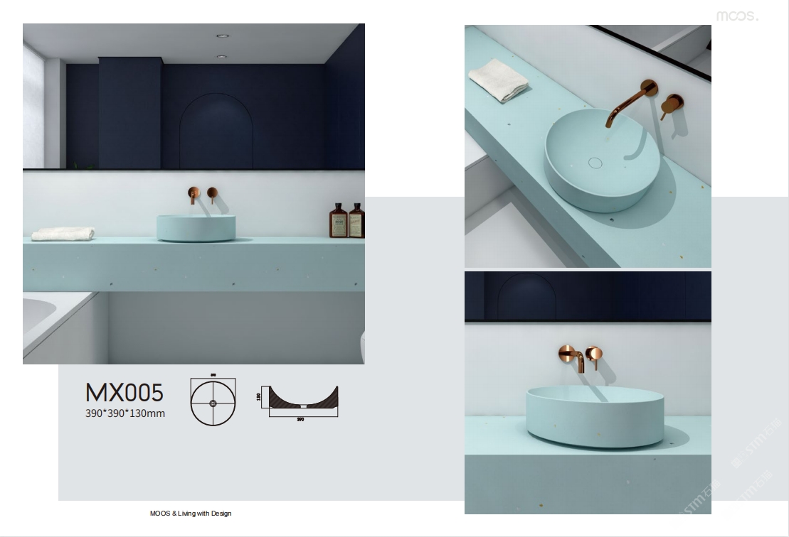「MOOS魔石衛(wèi)浴」無機水磨石一體化臺盆設(shè)計