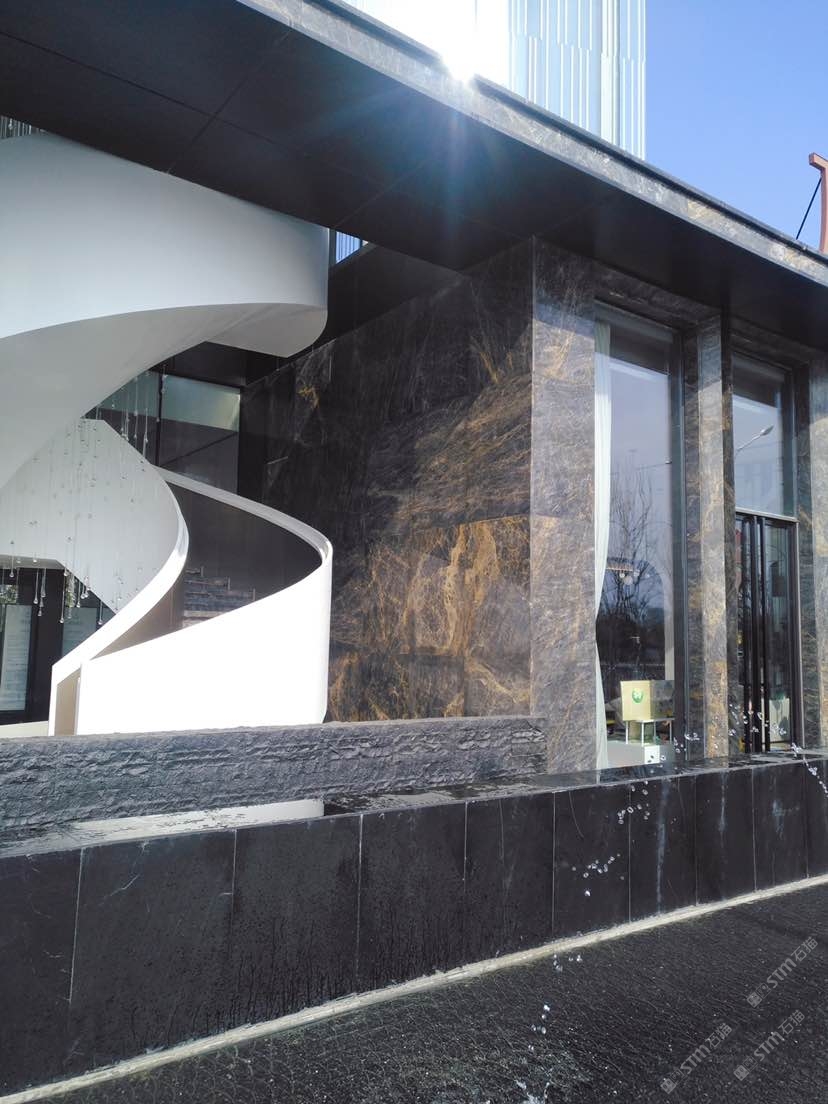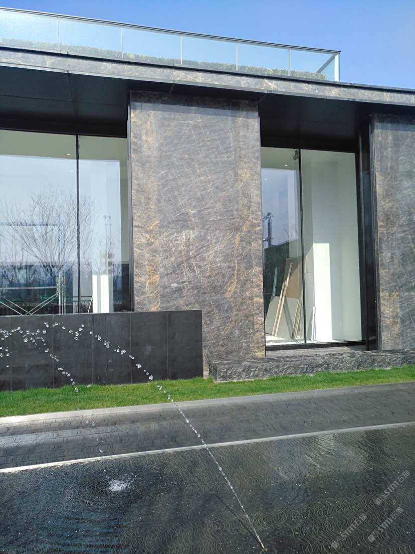 發(fā)布信息: 此項目位于西安新區(qū),設(shè)計師很有創(chuàng)意的使用寶格麗金這個產(chǎn)品用作外墻材料。整體風(fēng)格簡約而不簡單,天然石材的深色帶藍(lán)和金線突顯售樓部的高檔與厚重。