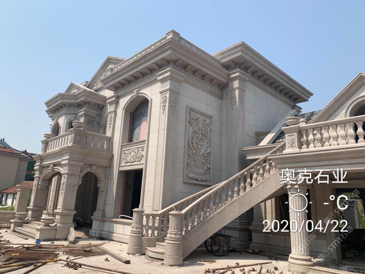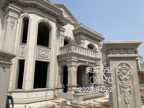 首頁 > 案例 > 別墅外墻干掛石材、浮雕雕刻、異形線條雕刻加工、門窗