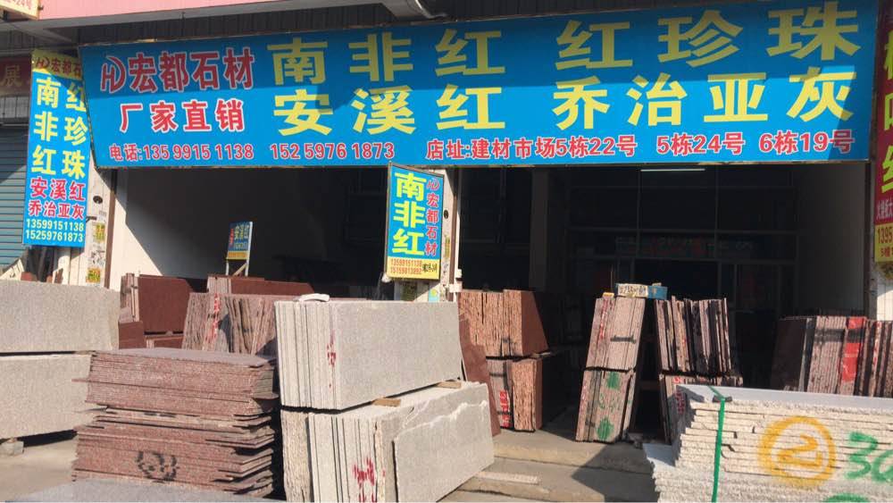 宏都石業(yè) 聯(lián)系人:吳美女    152****1873 查看 152****1873 查看 主營范圍: 大板批發(fā)、荒料、大理石加工、礦山、石材外貿(mào)、 企業(yè)地址:福建泉州水頭閩南建材市場5棟22號
