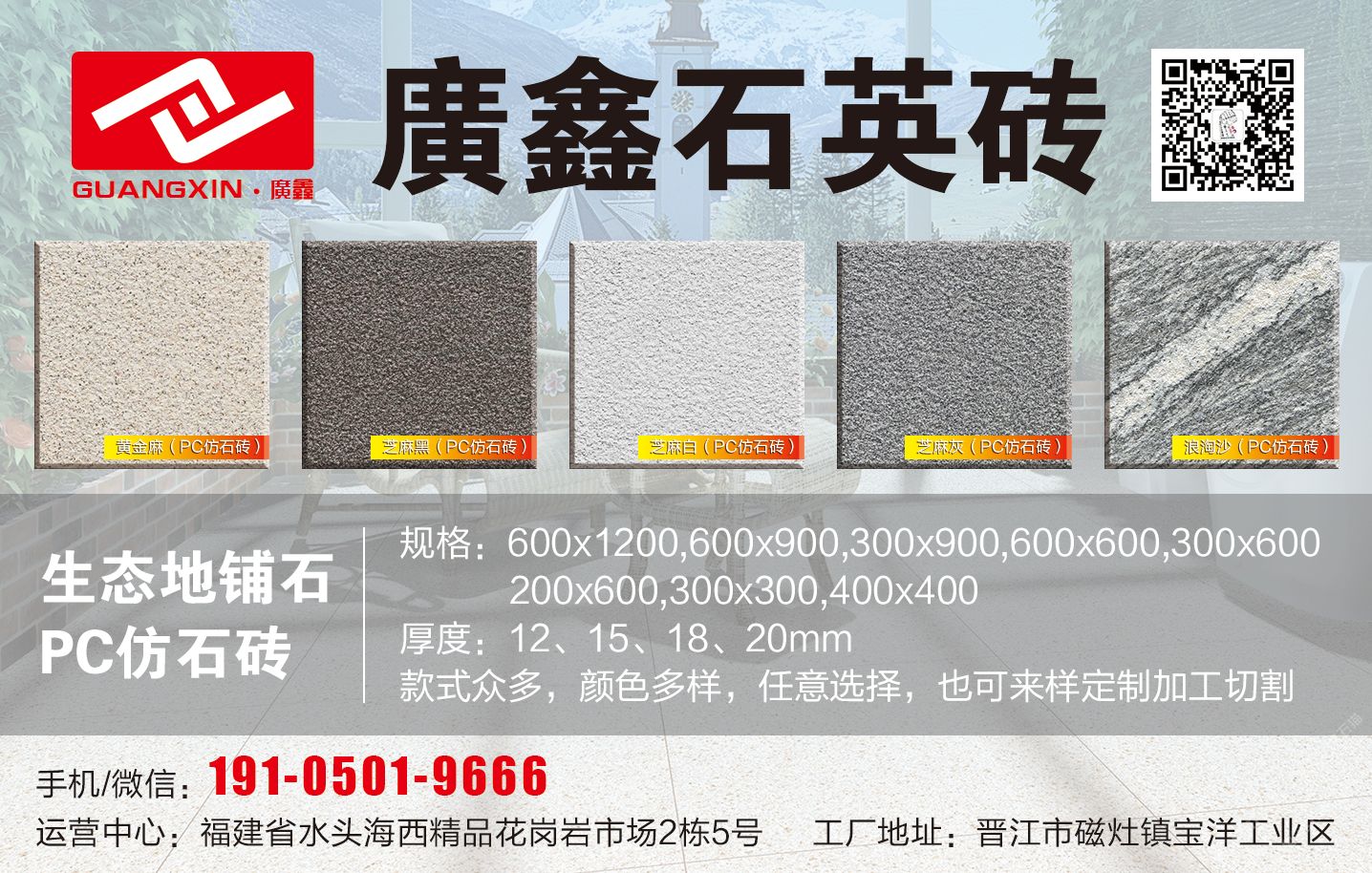 發(fā)布信息: 石英磚.pc仿石磚.生態(tài)地鋪石.PC磚.熔巖板.厚磚.生態(tài)石.景觀PC磚~~新國福實業(yè)/廣鑫石英磚·歡迎鑒賞13400812000