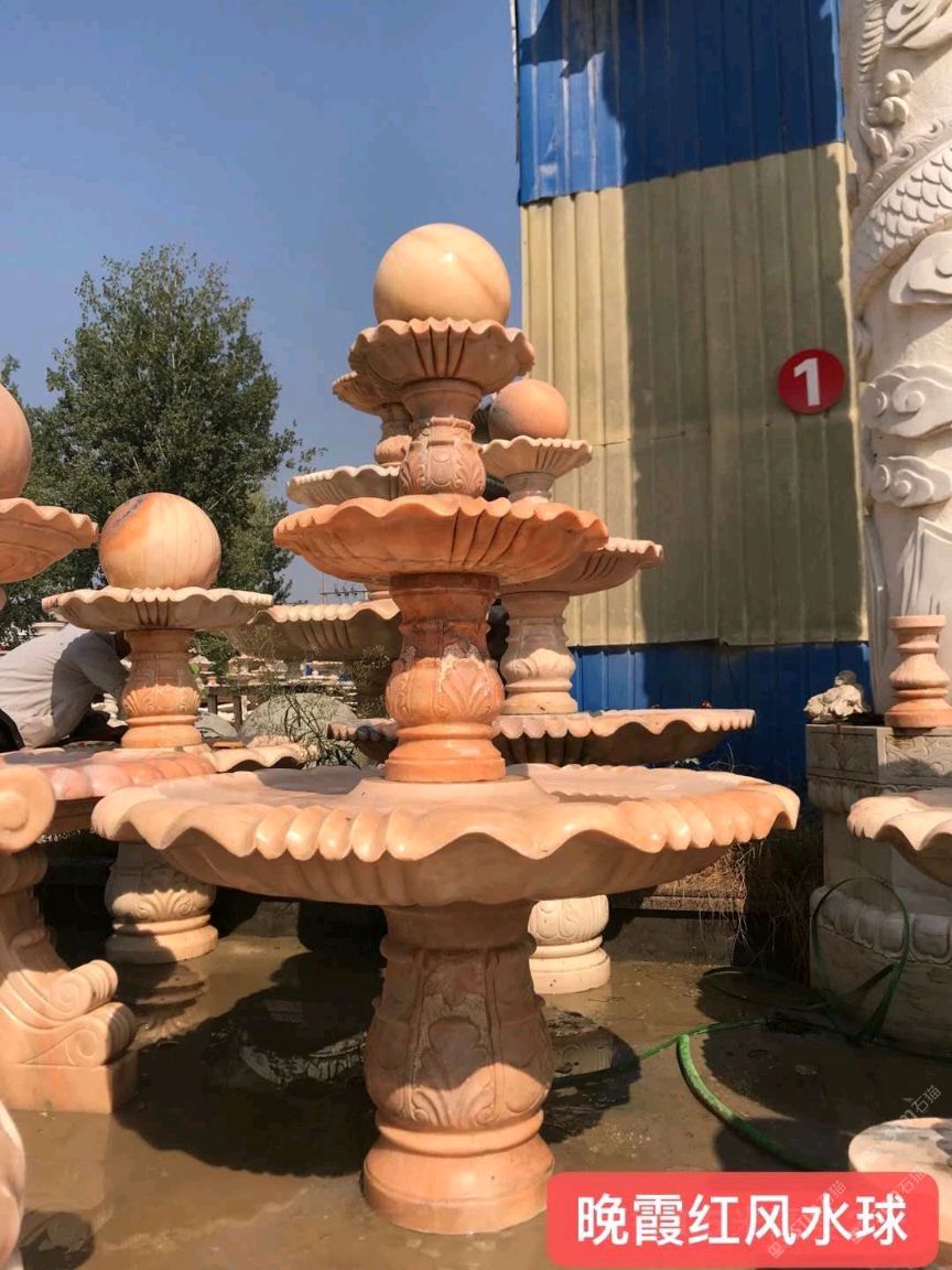 曲陽(yáng)雕塑廠家制作晚霞紅噴泉 庭院公園風(fēng)水球擺件