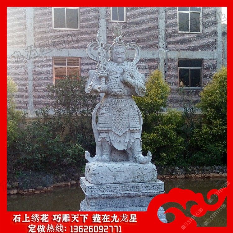 發(fā)布信息: 石雕韋陀菩薩金剛杵 石材韋馱菩薩像加工廠——九龍星石業(yè)。 石雕韋陀菩薩和石雕伽藍(lán)菩薩都是佛的護(hù)法神。韋陀菩薩為南方增長天王手下八將之一,也是四天王三十二將之首,是僧團(tuán)、寺院及齋供之著名的護(hù)法神,職責(zé)是護(hù)法安僧。他將護(hù)持賢劫千佛中九百九十九尊佛出世,為他們做護(hù)法,是賢劫中一位成佛者,名樓至佛!而珈藍(lán)菩薩,「伽藍(lán)」是寺院道場的通稱,佛教伽藍(lán)神的代表形象。就狹義而言,指伽藍(lán)土地的守護(hù)神;廣義而言,泛指所有擁護(hù)佛法的諸天善神。依《七佛八菩薩大陀羅尼神咒經(jīng)》所說,佛教伽藍(lán)神是保護(hù)伽藍(lán)(寺廟)的神。