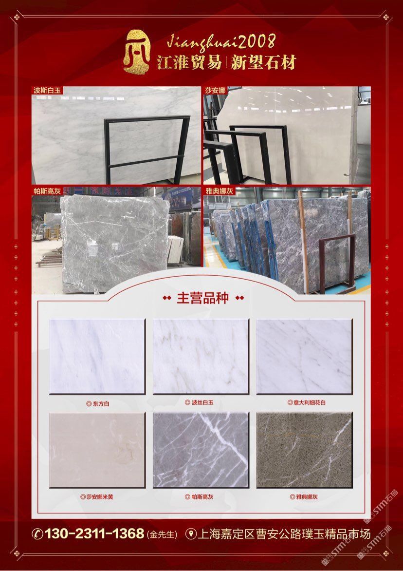 江淮貿易 聯系人:金先生    130****1368 查看 130****1368 查看 主營范圍: 大板批發(fā)、大理石加工、異型加工、荒料、石材工藝品、 企業(yè)地址:上海上海嘉定區(qū)曹安公路璞玉精品市場
