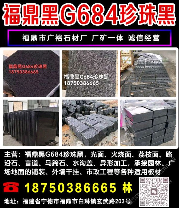 發(fā)布信息: 福鼎黑G684珍珠黑,光面、火燒面、荔枝面、路沿石、盲道、馬蹄石、水溝蓋、異形加工,承接園林、廣場地面的鋪裝、外墻干掛、市政工程等各種適用板材 歡迎新老客戶來電咨詢 18750386665 林 地址:福建省寧德市福鼎市白琳鎮(zhèn)玄武路203號