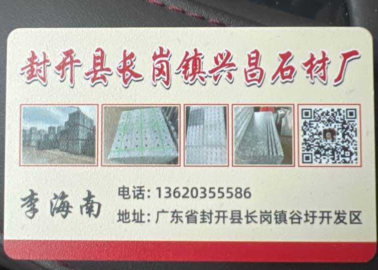 廣東省封開縣興昌石材廠 聯(lián)系人:李海南    136****5586 查看 手機號碼:無 主營范圍: 花崗巖加工、 企業(yè)地址:廣東肇慶封開縣X427