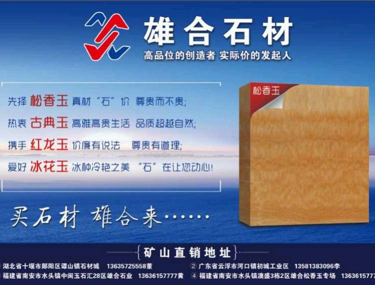 雄合石業(yè) 聯(lián)系人:黃    135****7386 查看 059****91221 查看 主營范圍: 企業(yè)地址:福建南安南安市水頭鎮(zhèn)澳盛市場3棟2區(qū)