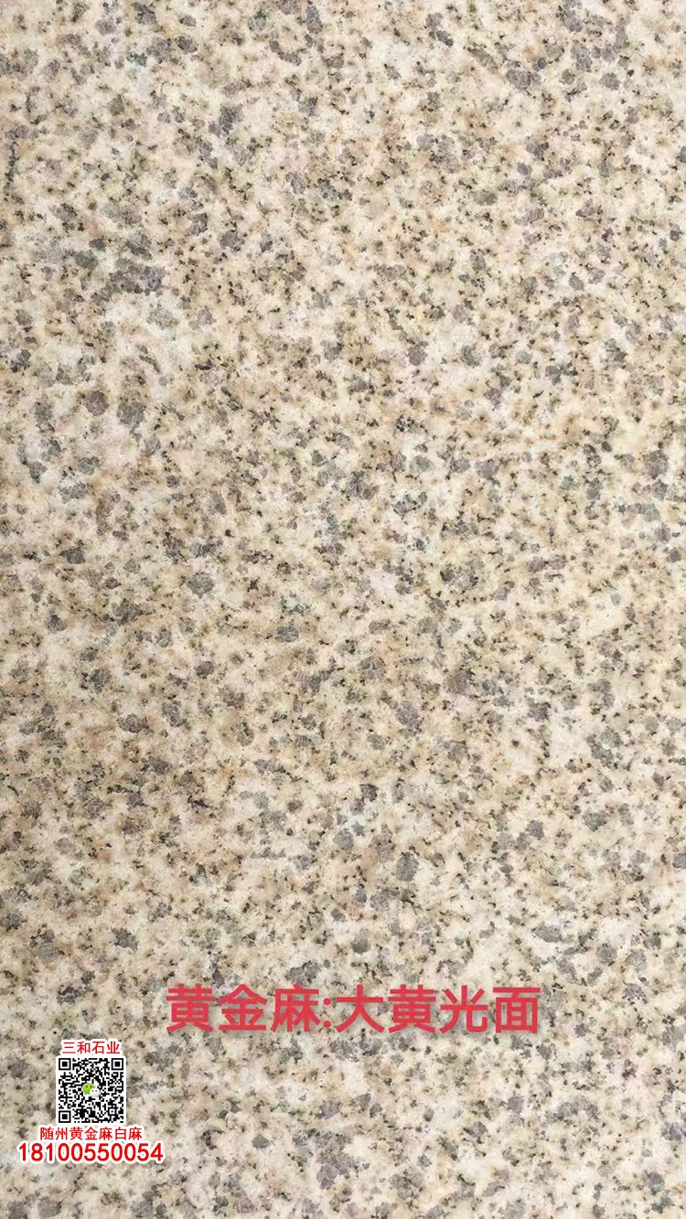 發(fā)布信息: 隨州黃金麻石材-隨州白麻花崗巖-光面黃金麻-燒面黃金麻-荔枝面黃金麻-光面白麻-燒面白麻-荔枝面白麻 隨縣三和石業(yè) 劉經(jīng)理 18100550054(微信同號(hào))專業(yè)隨州黃金麻/白麻供應(yīng)商廠家,工廠位于隨州石材工業(yè)園;專注于別墅幕墻干掛工程及園林地鋪石材加工,實(shí)力工廠,廠礦一體;主營(yíng):隨州黃金麻、隨州白麻、湖北黃金麻、湖北白麻、黃銹石、白銹石、黃色麻石、白色麻石、光面黃金麻、燒面黃金麻、荔枝面黃金麻等花崗巖;同等品質(zhì)基地批發(fā)價(jià)格更低,隨縣三和石業(yè)有限公司歡迎你來電溝通洽談業(yè)務(wù)!