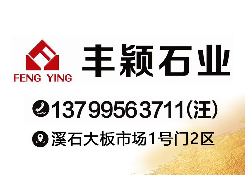 豐穎石業(yè) 聯(lián)系人:汪娟    137****3711 查看 手機號碼:無 主營范圍: 大板批發(fā)、荒料、大理石加工、 企業(yè)地址:福建泉州南安市水頭鎮(zhèn)溪石石材市場1號通道2區(qū)