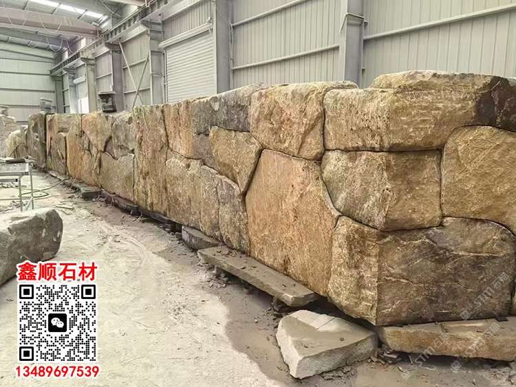 商圈 > 花崗巖 > 黃銹石壘墻石自然面墻磚天然石皮背景墻護(hù)坡石黃色毛石
