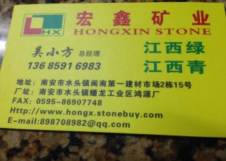 宏鑫礦業(yè)主營(yíng)產(chǎn)品:江西綠,羅馬金鉆,菊花黃,福建青,萬(wàn)年青(深綠麻)光面,江西青,黃金麻1,壽寧紅,浪淘沙,新卡麥,新卡麥1企業(yè)地址:福建南安閩南建材市場(chǎng)2棟15號(hào)