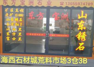 東方寶洲石業(yè)主營產(chǎn)品:山東銹石,山西黑,帝王灰麻,山水巖,大浪淘沙,山東浪淘沙,G603(金點),新魯灰,山東銹石(火燒面),山東銹石(荔枝面),銀點白麻企業(yè)地址:福建南安海西石材城荒料市場3倉3B