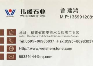 偉盛石業(yè)主營產(chǎn)品:金鉆麻1,愛迪達(dá),安哥拉棕,鋼鐵灰,南非淺灰,蘋果綠1,云黑石,鐵灰,蘋果綠,咖啡鉆,安哥拉黑(黑水晶),奧莫爾咖啡鉆1,G664,漳浦紅G648,云黑石(巴西),南非黑,海南芝麻黑(光面),海藍(lán)寶,浪淘沙3企業(yè)地址:福建泉州南安市水頭鎮(zhèn)后房工業(yè)區(qū)