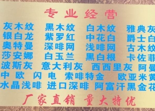 順華大板市場主營產品:凱撒灰,圣誕米黃,云多拉灰,月桂銀灰,城堡灰,卡斯特灰,意大利灰,古堡灰8,意大利灰28,瑪雅灰1,新中歐米黃,新中歐米黃1,中歐米黃(老礦),歐典米黃,太平洋暖灰1,太平洋暖灰,橄欖灰(新礦),新奧特曼,黃金灰,白玉蘭,富貴金龍,奧特曼,奧特曼灰,塞浦路斯灰(淺色),愛琴海灰1,西西里灰5,北極光(土耳其礦),拿鐵灰2,迪奧灰,水墨灰,羅馬洞,白洞石,雅鉑灰,奧蘭多灰(老礦),愛瑪仕灰1,愛馬仕灰,愛瑪仕灰2,法國灰2,羅馬尼亞灰,白金沙,卡特木紋1,蘇格蘭灰,星辰灰,雅典灰(夢幻灰),菩提灰,美尼斯灰,英倫灰,羅曼蒂克灰,爵士白,奧巴馬木紋,直紋白玉,阿曼米黃,西西里灰,西西里灰1,西西里灰2,西西里灰3,西西里灰4,新西西里灰(AD礦),新西西里灰,拿鐵灰(新西西里灰),北極光,北極光4,北極光5,北極光(巴圖礦),北極光(宇杰礦),新云多拉灰10,愛琴?;?愛琴?;?,愛琴海灰(點狀),愛琴海灰(瑪雅灰),愛琴?;遥⊿D礦),愛琴海灰(土耳其礦),冬蟲夏草,瑪雅灰(愛琴?;?、新土耳其灰),白玉蘭1,白玉蘭2,白玉蘭3,白玉蘭4,白玉蘭(8號礦),白玉蘭(艾斯特),白玉蘭(EG礦),白玉蘭灰企業(yè)地址:福建南安水頭濱海工業(yè)區(qū)