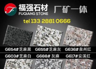 長(zhǎng)泰縣福強(qiáng)石材廠主營(yíng)產(chǎn)品:芝麻黑,芝麻白,芝麻白(火燒面),芝麻白(荔枝面),芝麻灰,芝麻灰1,芝麻灰2,G654,G654芝麻灰,G654(自然面),新G654,新G654(1),芝麻黑654(火燒面),芝麻黑654,新617,G617,新G623,G688,漳浦紅G648,G655,G655 (1),G655(荔枝面),G655(火燒面)1,新G655,長(zhǎng)泰G655,芝麻灰(江西),芝麻灰655(火燒面),喬治亞灰,福建灰麻,福建灰麻(亞光面),福建芝麻黑,喬治亞灰(深色),灰麻1,金點(diǎn)灰麻2,金點(diǎn)灰麻1,新芝麻黑(火燒面),新芝麻黑(光面),芝麻黑(荔枝面),芝麻黑654(新礦),G655(漳州礦),芝麻白(603),芝麻白G603,G603,泉州紅,G636,G636(福建礦),G606(礱石),G606(正礦),黃銹石,柬埔寨芝麻黑企業(yè)地址:福建泉州南安市石井鎮(zhèn)林柄村江鋒石材廠
